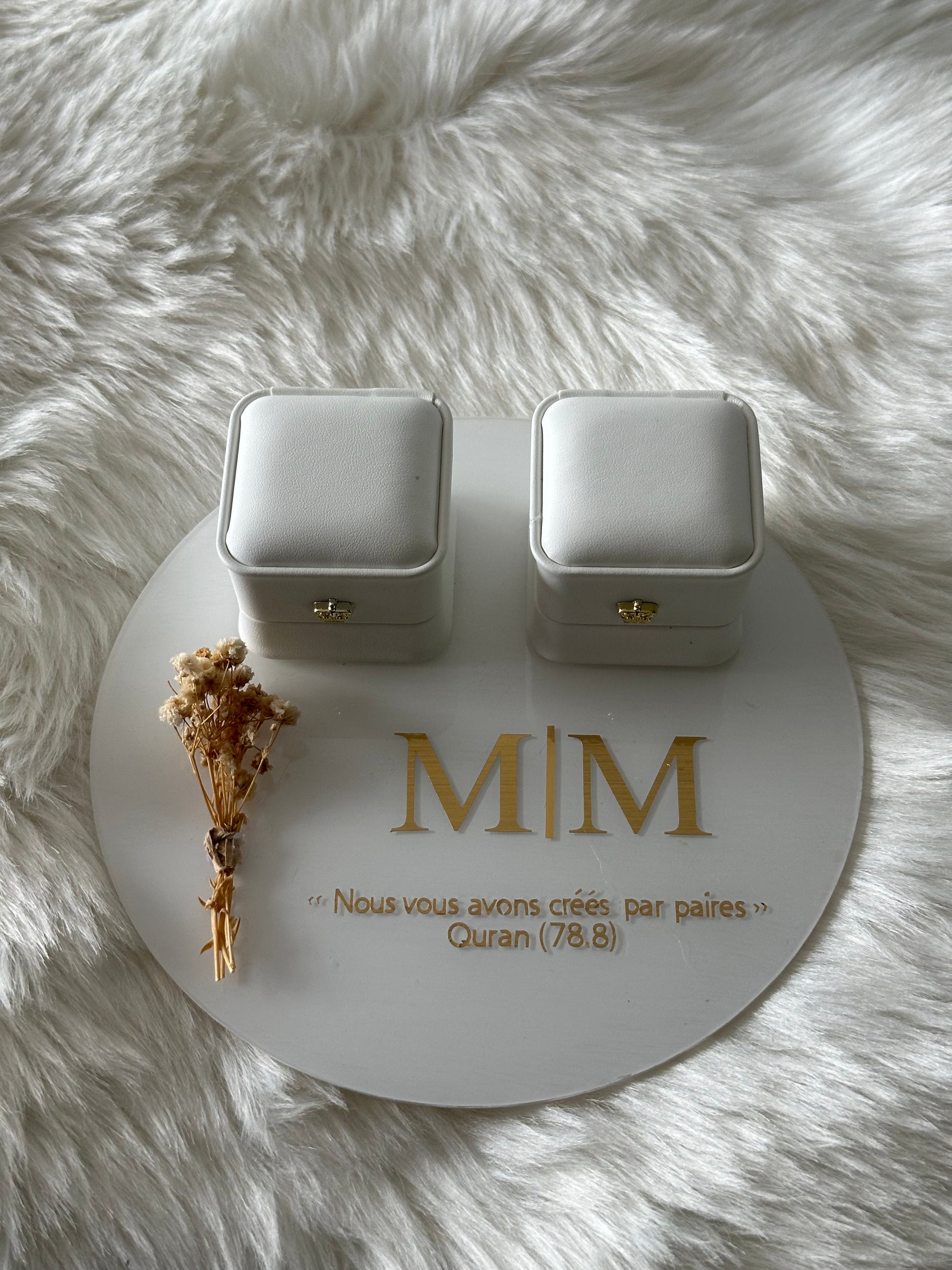 Le plateau est conçu pour contenir des alliances, accessoires légers ou petits éléments décoratifs. Ne le surchargez pas pour éviter toute déformation.